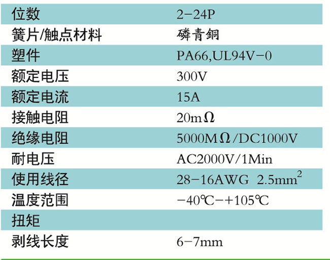 接線端子的絕緣材料用改性的尼龍(PA66),能達到或超過IEC947-7-1EN60947-7-1標準,阻燃等級達到UL94V-0具有良好的電氣性能和機械性能。螺絲用高強度的鋼制成鍍鋅或鎳處理,導電體四方針用合金銅制成表面鍍錫,壓片采用彈性及極強的磷青銅表面鍍錫或鎳;壓線框用抗應力裂縫腐蝕的合金銅制成,這些金屬表面還鍍錫或鍍鎳加以保護。設計完全符合IEC60947-7-1.GB14048.7等標準。