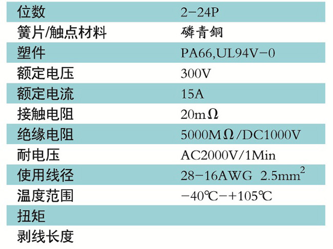 接線端子的絕緣材料用改性的尼龍(PA66),能達到或超過IEC947-7-1EN60947-7-1標準,阻燃等級達到UL94V-0具有良好的電氣性能和機械性能。螺絲用高強度的鋼制成鍍鋅或鎳處理,導電體四方針用合金銅制成表面鍍錫,壓片采用彈性及極強的磷青銅表面鍍錫或鎳;壓線框用抗應力裂縫腐蝕的合金銅制成,這些金屬表面還鍍錫或鍍鎳加以保護。設計完全符合IEC60947-7-1.GB14048.7等標準。